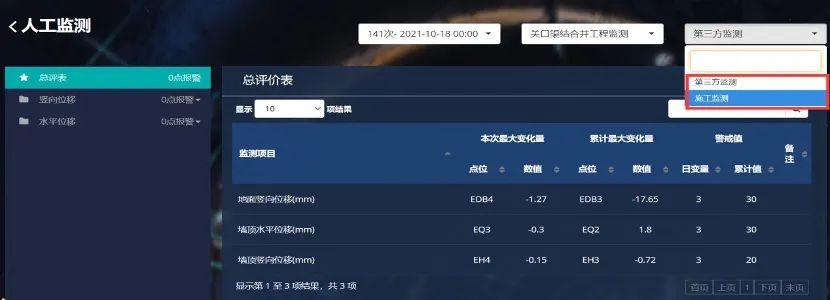 通过信息化平台实现了对人工监测数据、自动化监测的综合管理,以及对施工监测单位和第三方监测单位双方监测数据的比对、管理,通过一个平台解决了同一个项目不同来源数据应用管理的难题。