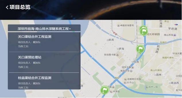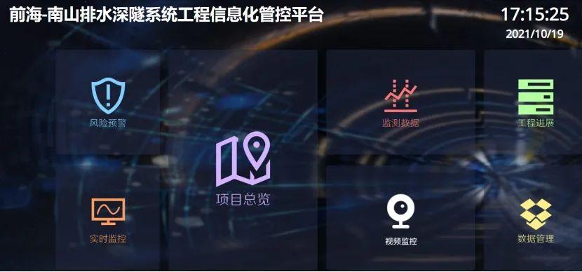 本项目中运用的“前海-南山排水深隧系统工程信息化管控平台”,以工程安全管理为出发点,对工程相关的地质勘察、设计、施工进度等资料,以及测点信息、监测仪器设备、监测数据、周边建筑物环境等有关资料进行全面集成管理。