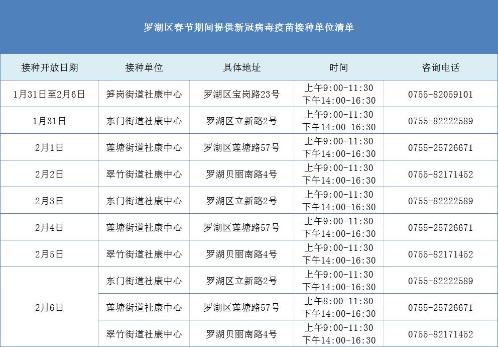 罗湖区以下新冠疫苗接种点
