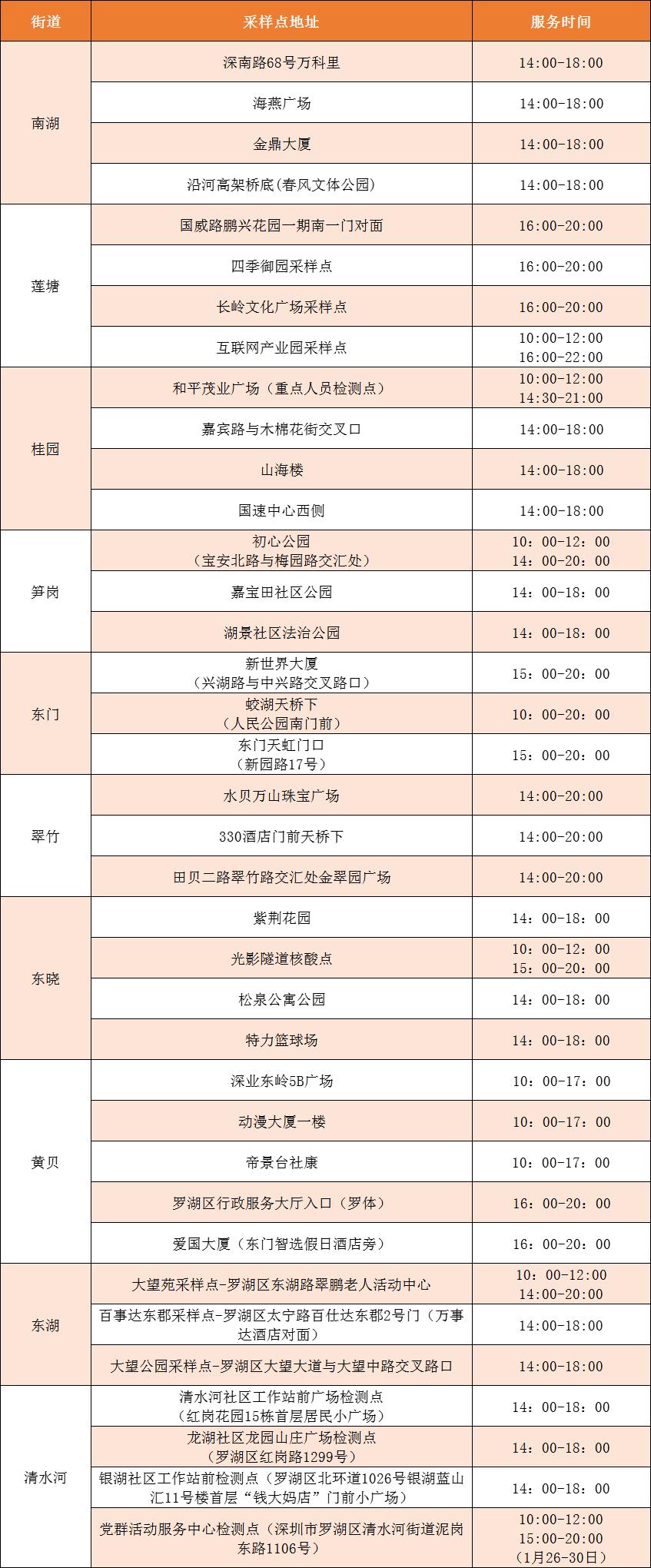 罗湖区设置了以下免费核酸检测采样点