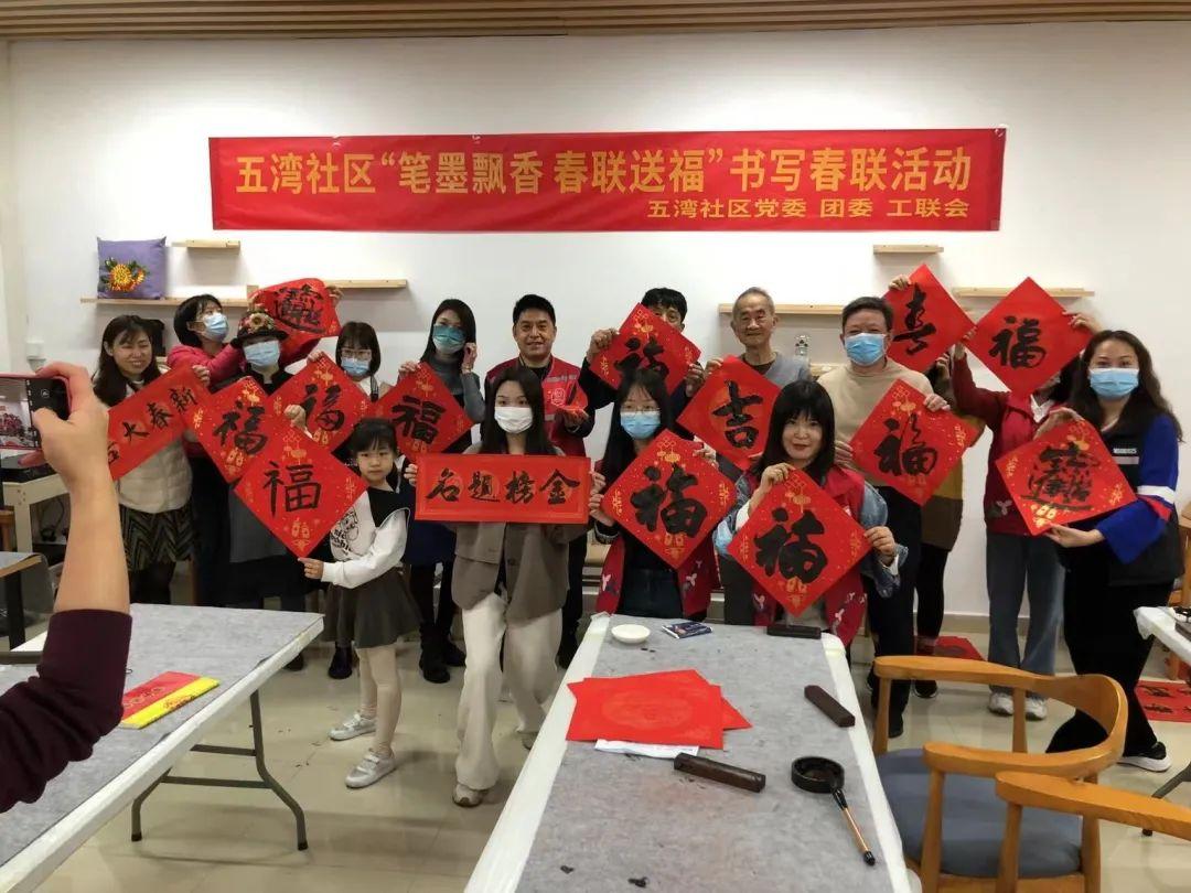 近日,五湾社区党委、团委、工联会在龙瑞佳园职工之家开展“笔墨飘香 春联送福”活动,以此践行“爱国,敬业,诚信,友善”价值观,增强居民对中国文化的热爱之情,同时丰富和满足居民的文化精神生活。