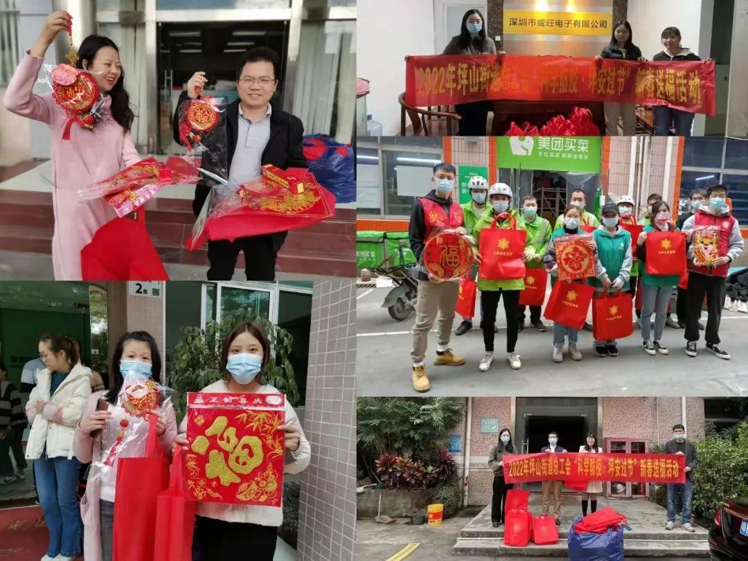 春送关怀,慰问暖人心。在2022年新春来临之际,坪山区总工会联合各街道总工会筹集慰问专项资金110余万元,深入社区、企业和疫情防控一线广泛开展送温暖活动,慰问坚守岗位的一线职工、劳模、新就业形态劳动者和奋战在抗疫一线的工作人员,为他们送去了新春福袋、生活用品、春联和水果饼干等物资,惠及1.1万余人。