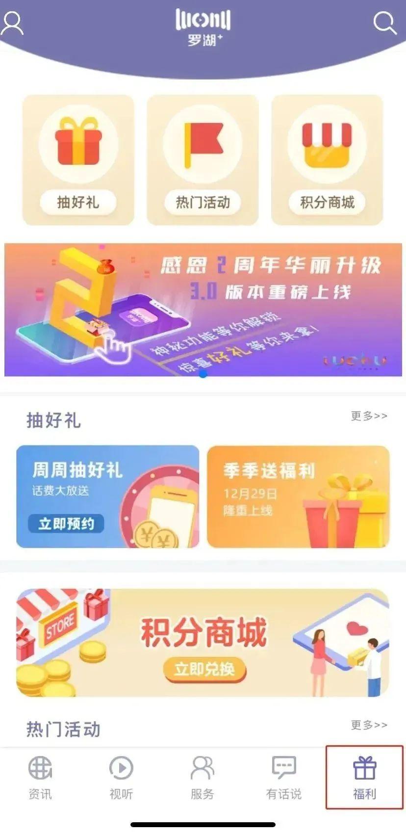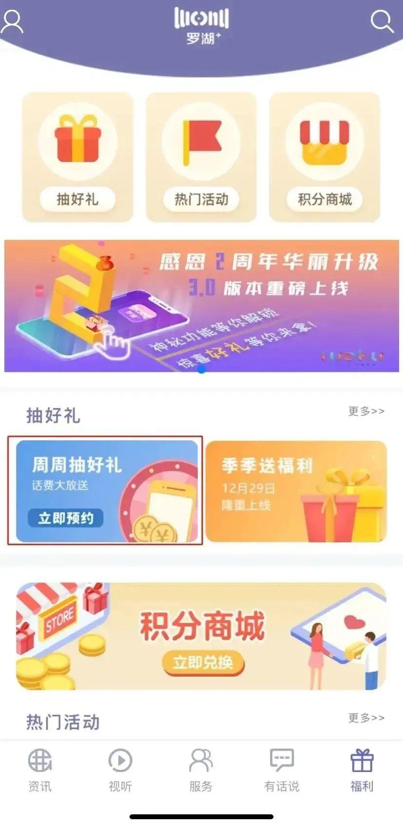 为了感谢广大用户对“罗湖Plus”APP的关注和支持,“罗湖Plus”启动“周周抽好礼,季季送福利” 活动,话费、自助餐券、购物卡券每周、每季度在线放送,动动手指就能抢~