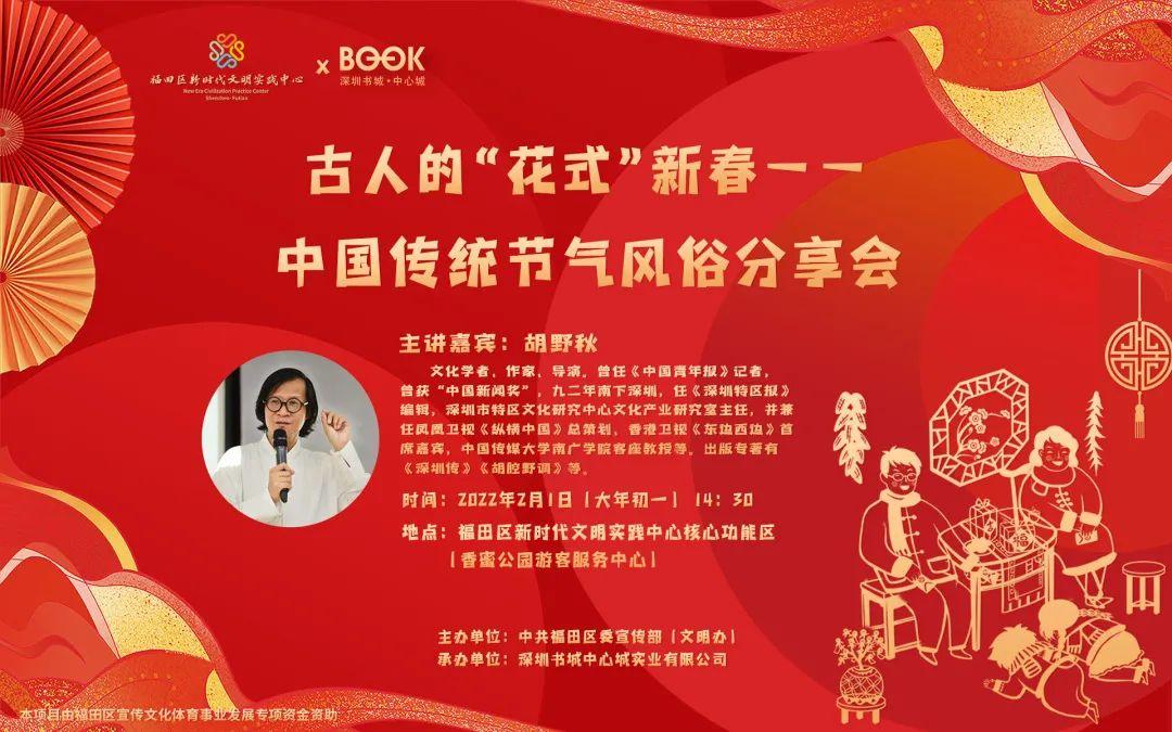 2月1日(正月初一),来看古人的“花式”新春——中国传统节气风俗分享会。届时,将邀请著名文化学者,以新春风俗为出发点,分享中国传统二十四节气下的传统风俗,以及不同地区、不同时代传统风俗的区别与演变,带领市民进一步认识了解中国传统文化,领略风俗之趣、风俗之美。