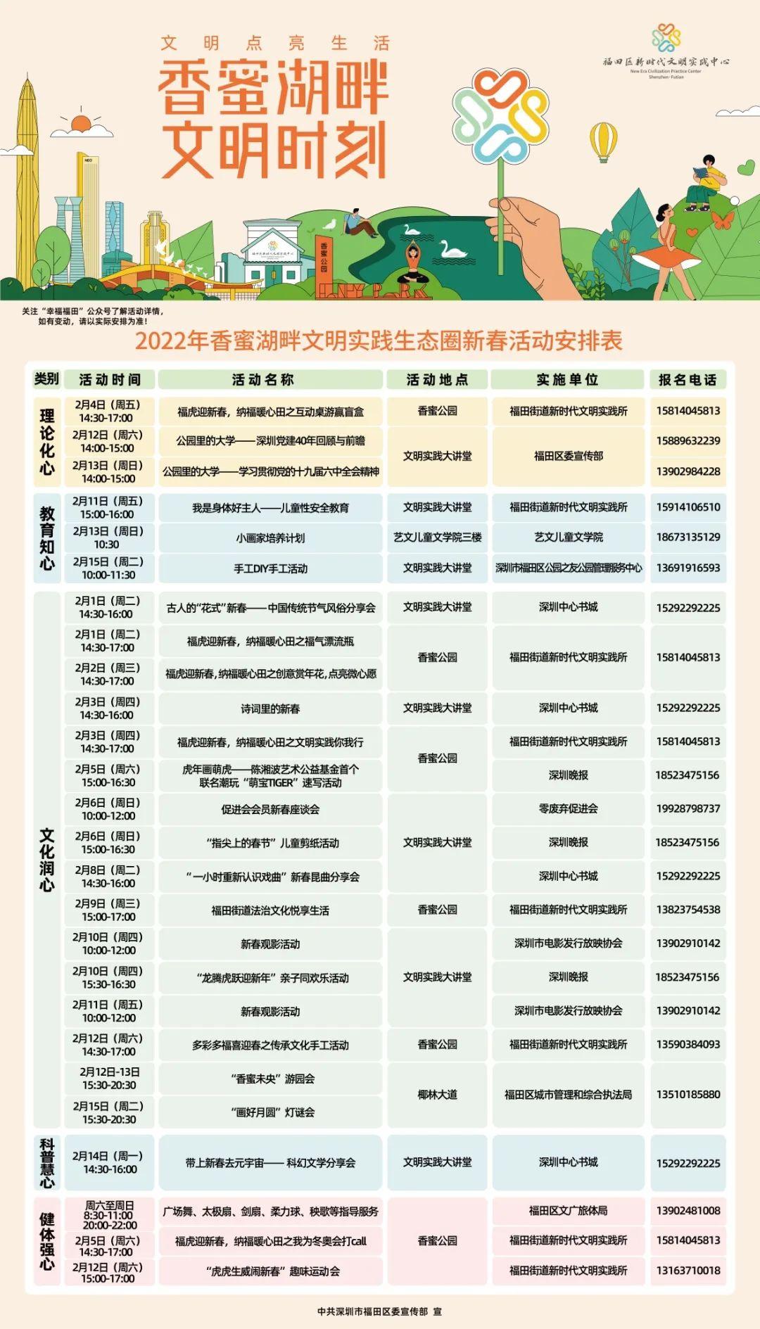 互动桌游赢盲盒趣味十足;“龙腾虎跃迎新年”亲子同欢乐活动热热闹闹;“虎年画萌虎”活动将邀请关山月美术馆合作老师,带领市民朋友以新时代文明实践中心和陈湘波老师设计的“萌宝TIGER”为对象开展写生活动,活动中讲解年俗、“萌宝TIGER”创意设计概念和绘画技巧,进行画作赏析……有福有趣有气氛,过年,不就是你在闹他在笑?