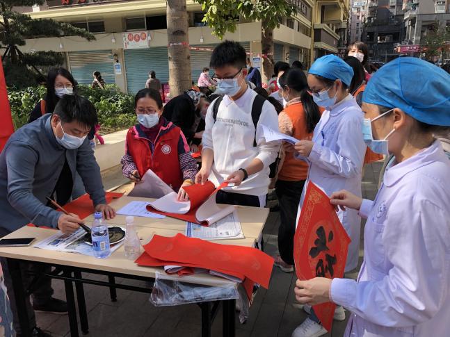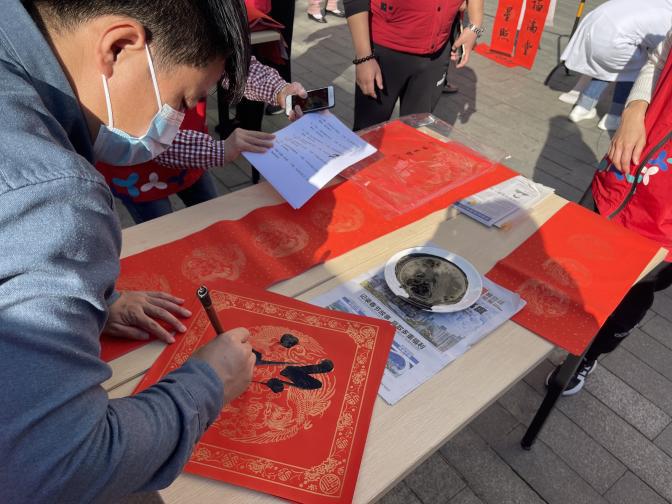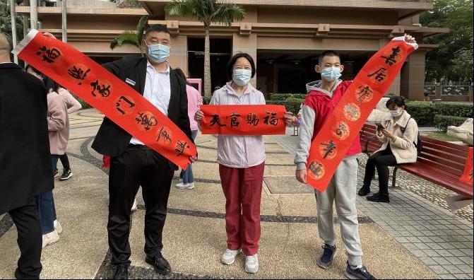 在这次活动中,工作人员还特别为社康医护人员撰写春联和福字,沙头街道文化站书画社长杨瑞林表示:“疫情当下,努力坚守工作岗位、奋战一线的医护人员让我们非常敬佩,新春将至,为他们写送春联是我们力所能及的事情。