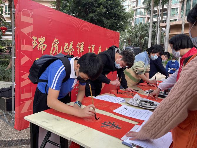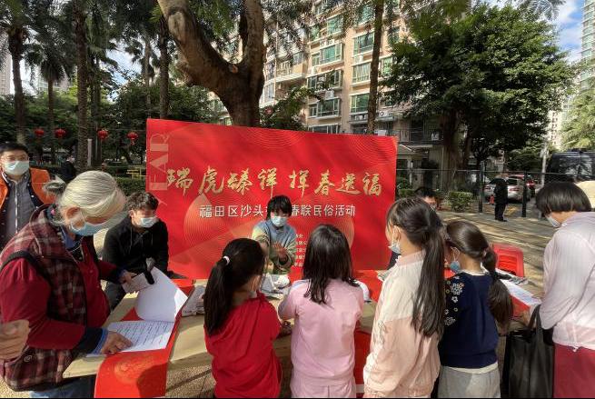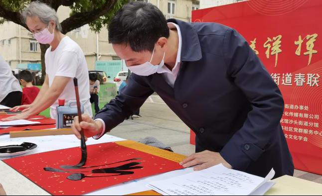 为丰富居民群众节日期间的文化生活,切实关爱留深建设者,营造欢乐祥和平安健康文明的节日氛围,沙头街道精心策划、科学安排,于近日在12个社区组织开展“瑞虎臻祥,挥春送福”春联民俗新时代文明实践活动,邀请书法家进社区,现场书写春联、福字,免费赠送给社区居民群众。
