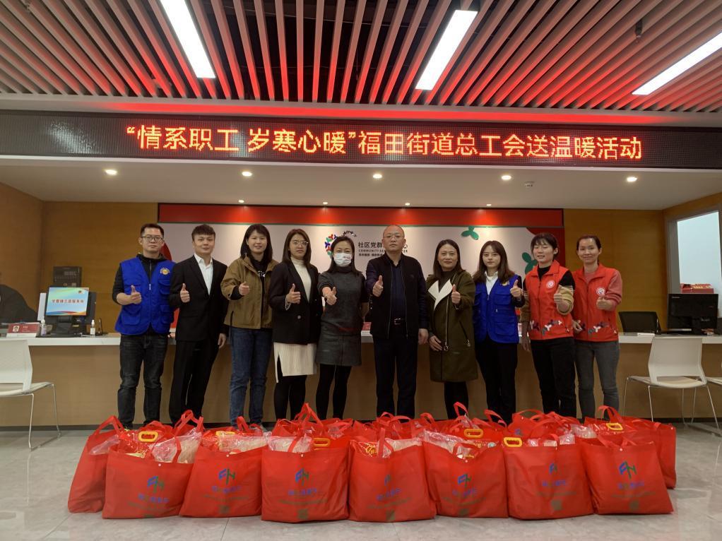 近期,福田街道总工会深入一线开展“送温暖”活动, 把“我为群众办实事”实践活动引向深入,充分发挥工会组织引领作用,在全街道形成尊重关爱广大劳动者的社会氛围, 把党和政府的关怀、工会组织的温暖送到职工的心坎上。