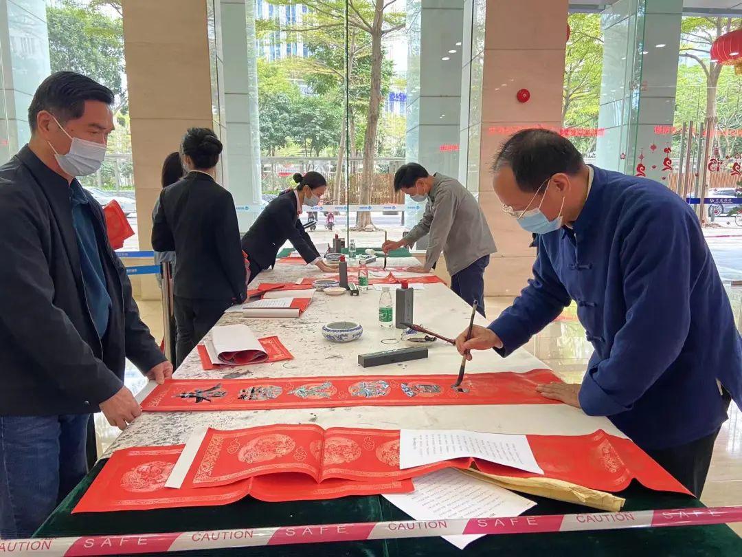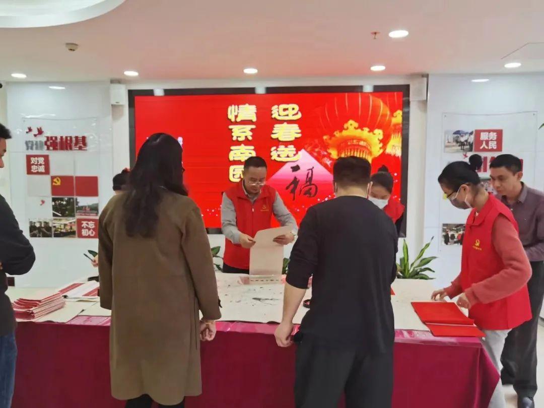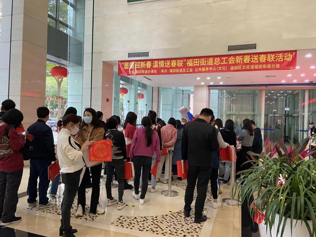 为丰富广大职工的精神文化生活,营造欢乐祥和的春节氛围。1月25日下午,福田街道总工会在华融大厦楼宇工联会开展了“墨香迎新春 温情送春联”新春送春联活动。活动现场,来自福田街道老百姓书画院的老师们挥毫泼墨,将一副副满载祝福的春联、一张张承载希望的“福”字送到了职工朋友的手中。新的一年,福田街道总工会将继续做实服务职工的工作,把工会的温暖送到广大职工心坎上,成为职工信得过、靠得住的“娘家人”。