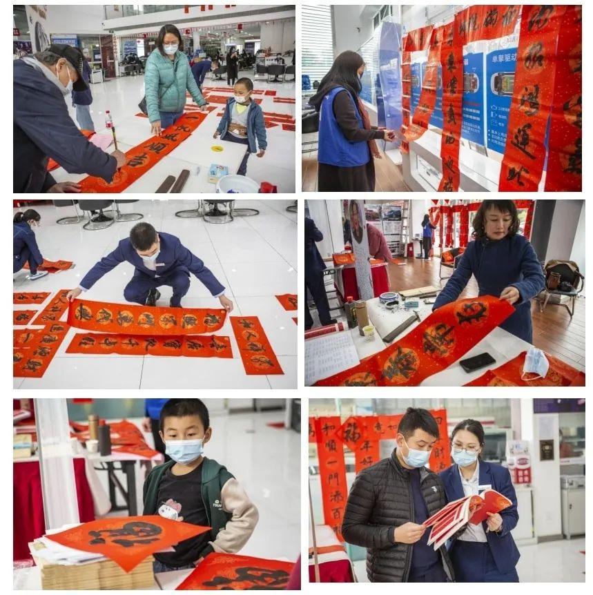 书写现场翰墨飘香、人头攒动,书法大师们奋笔疾书,专心书写,随着笔锋的或顿或扬,一副副书写工整、行云流畅的对联跃然纸上 ,一幅一幅散发着清新墨香的喜庆大红春联展现在人前,充满了浓浓的年味。志愿者则帮忙把春联收集、排列起来一一晾干。线下活动中职工市民亲自在现场带走,不一会儿,一幅幅喜气洋洋的大红春联和红彤彤的"福"字出现在每个人手中。而线上的一幅幅春联也在等待着送到职工的手中。