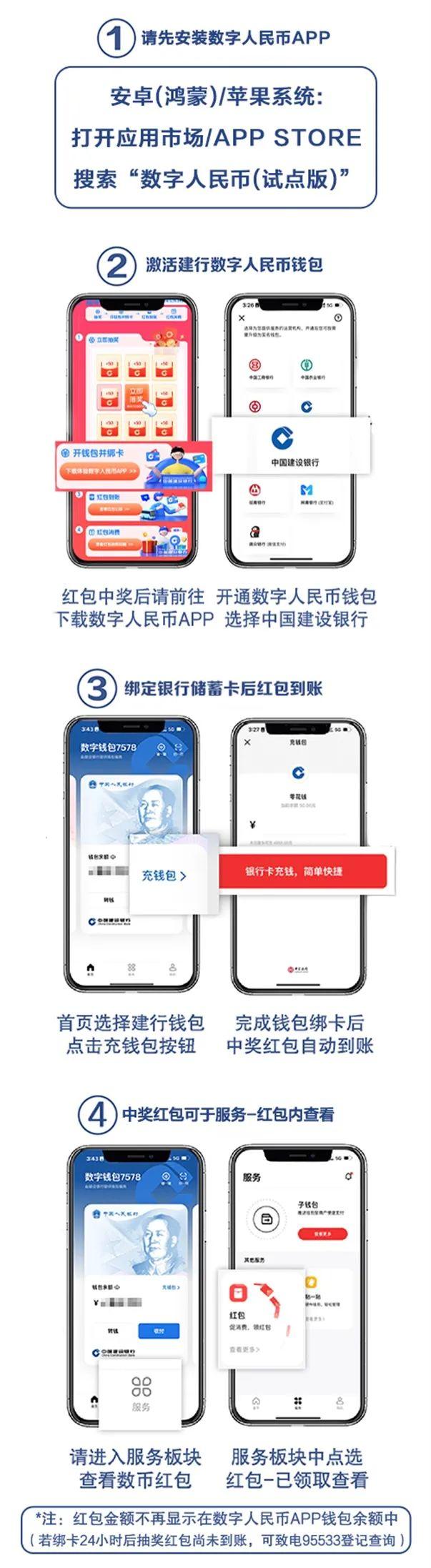 下载数字人民币APP开通建行钱包,并绑定任意银行储蓄卡升级为二类钱包后,红包自动到账。