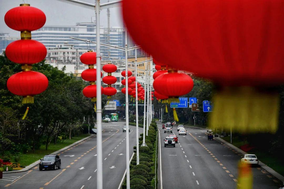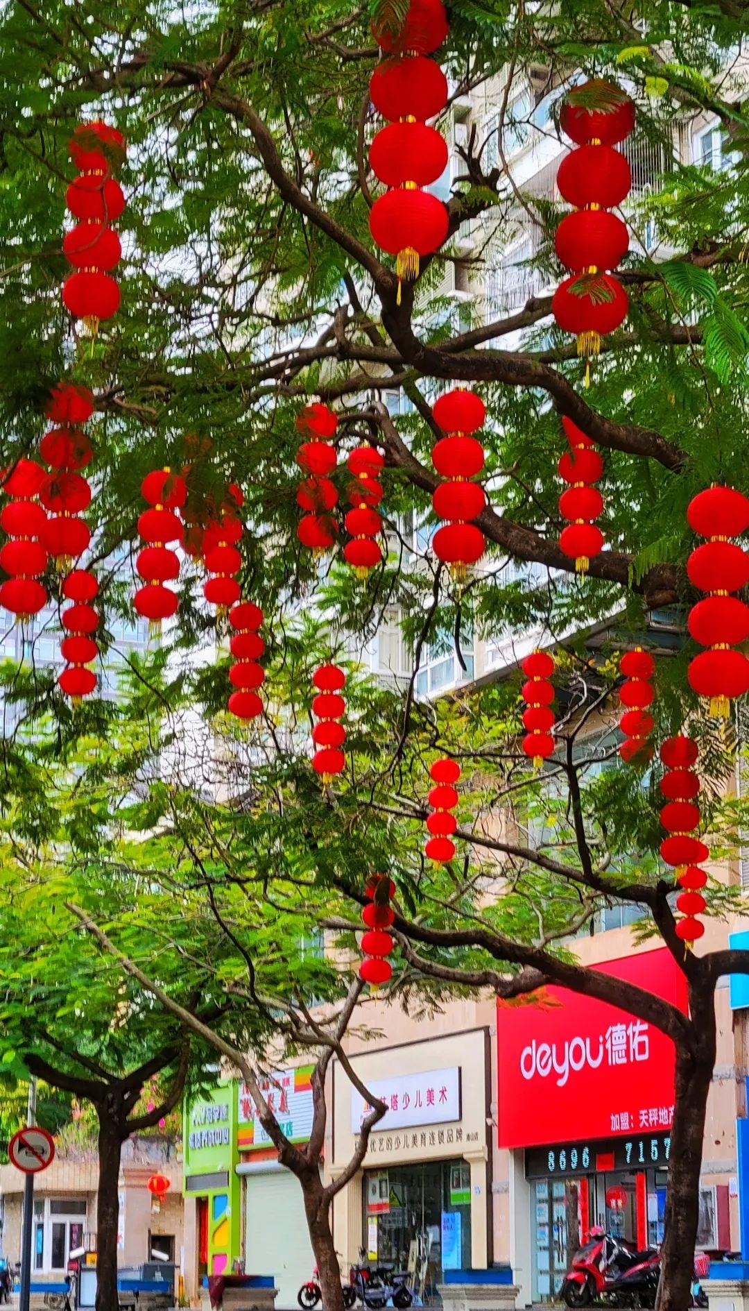 在南山,不少道路,都挂上了红彤彤的灯笼,一排排、一列列,整齐地排列在道路两旁,成为一道靓丽的风景线,平添了节日的氛围。