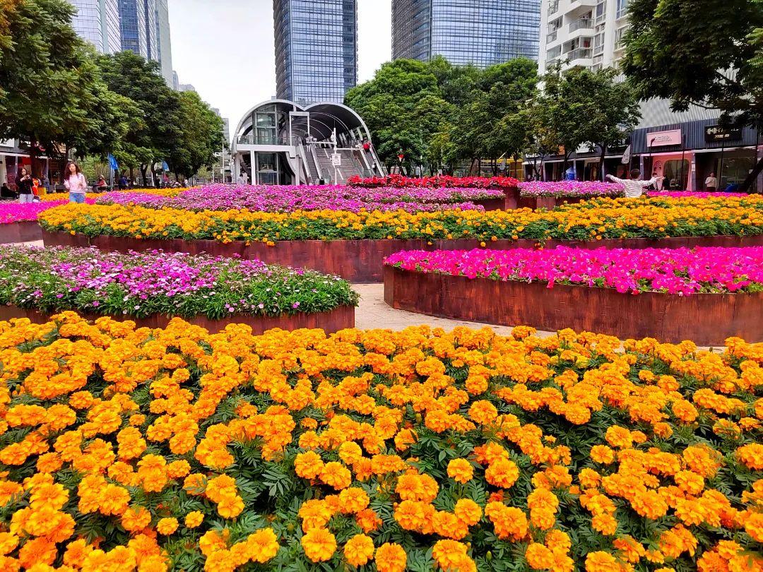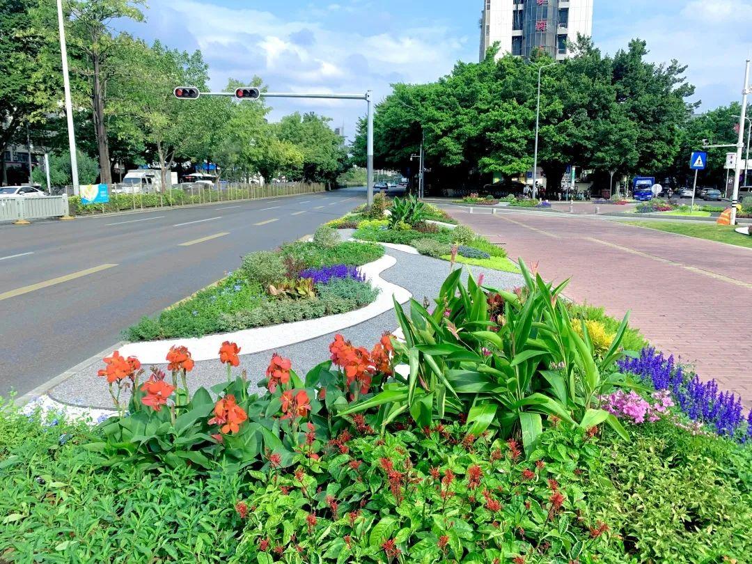 突出花镜的持续性和自然生态特点,搭配适量时花丰富花景层次,让市民体验优美、自然、和谐的节日景观。据统计,南山城管部门更换主要路口和重要节点时花、花境共200余处,约3万平方米。