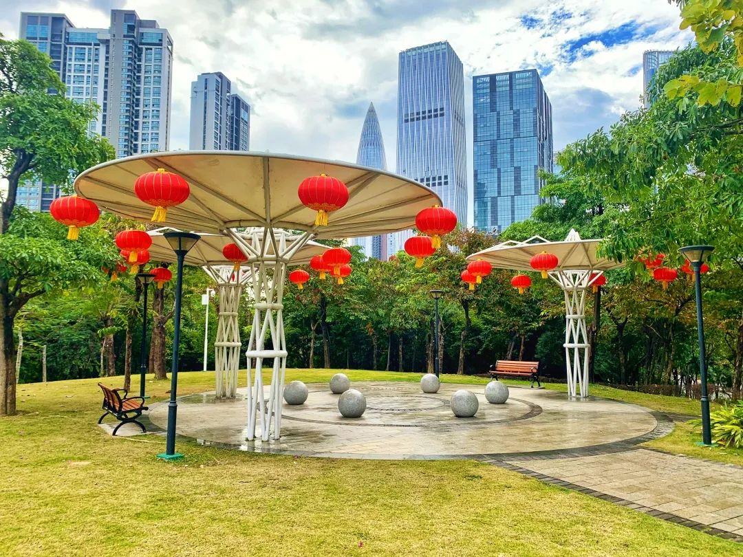 春节临近,南山不少公园都换上“新装”,红红火火,在扮靓园区环境的同时,也让市民耳目一新,感受到幸福南山的浓浓年味。
