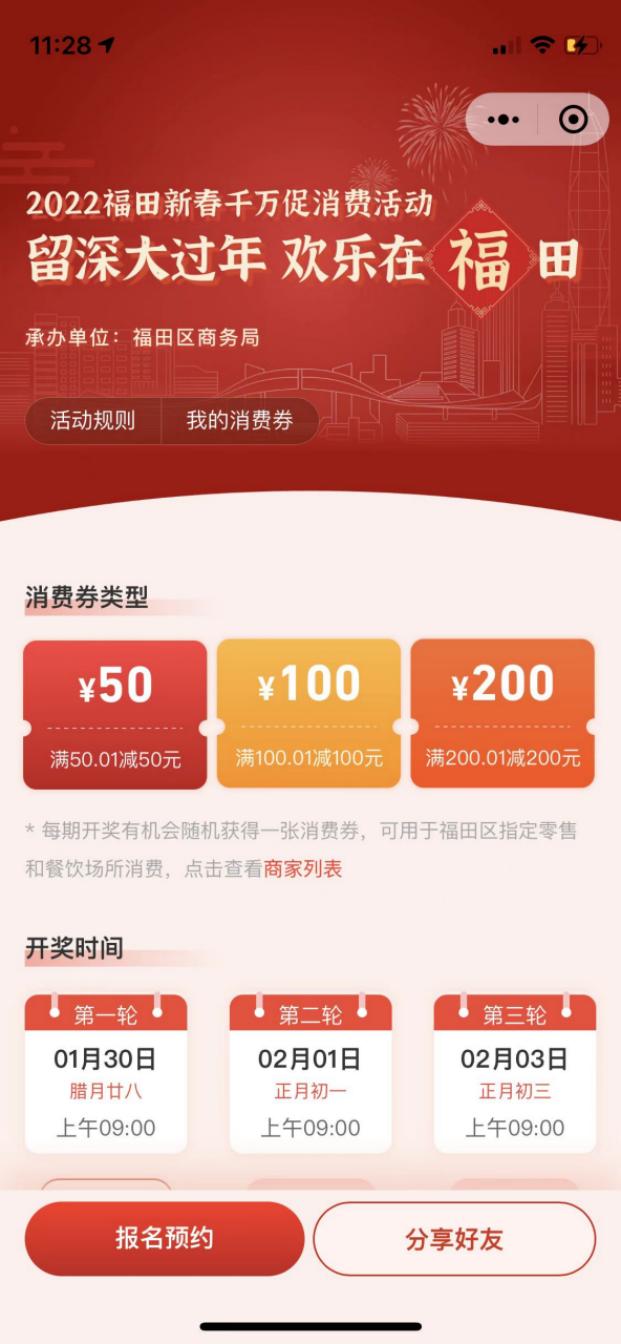 方式一:微信搜索“i福田”小程序,在小程序首页找到“留深过大年 欢乐在福田”活动入口。