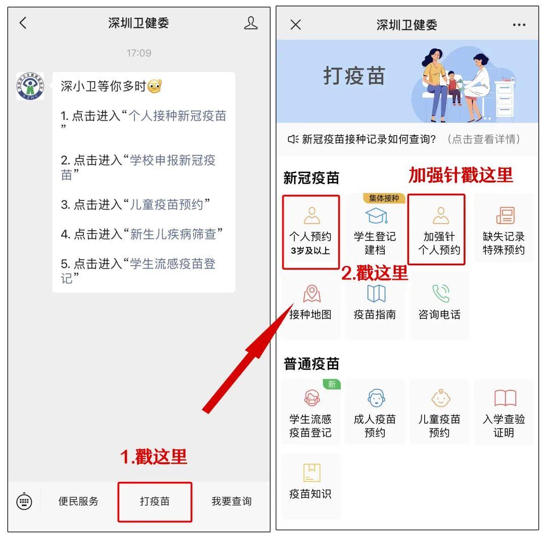 ② 在菜单栏点击【打疫苗】-【个人预约】或【加强针个人预约】,填写信息并预约即可。