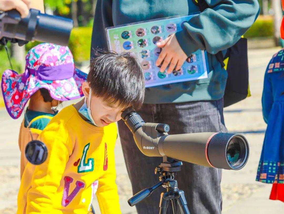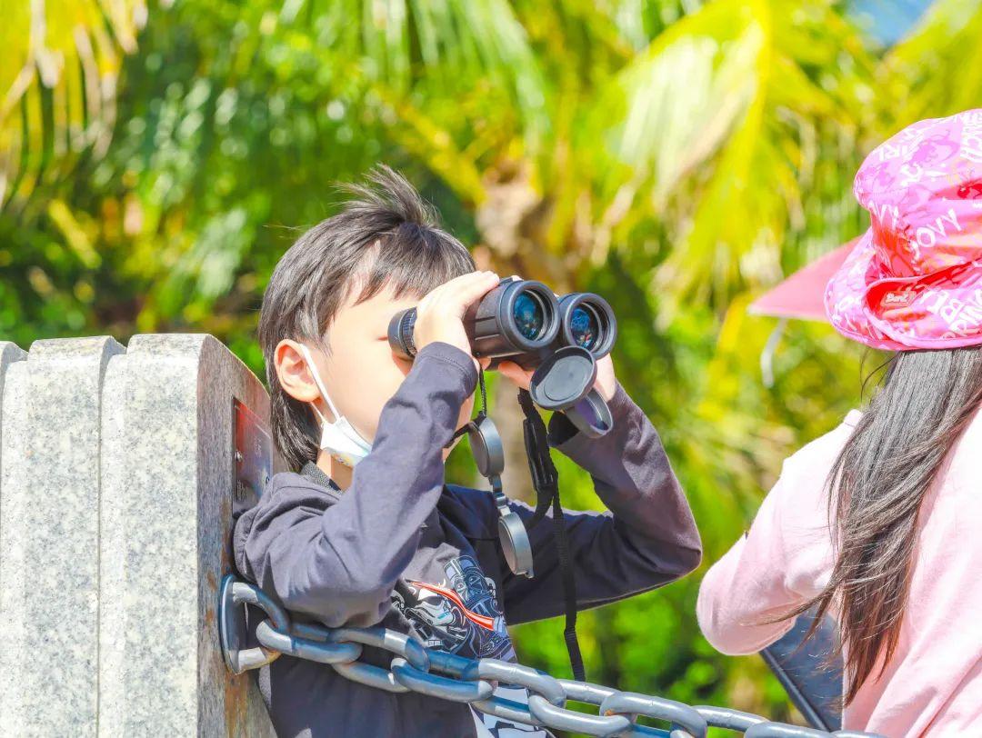 熟悉观鸟望远镜的使用方法,结合自然图鉴册,掌握观察鸟类的方法。