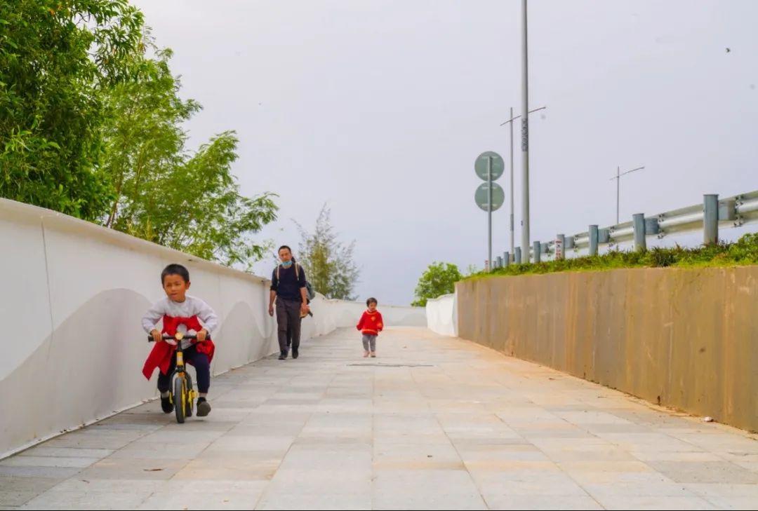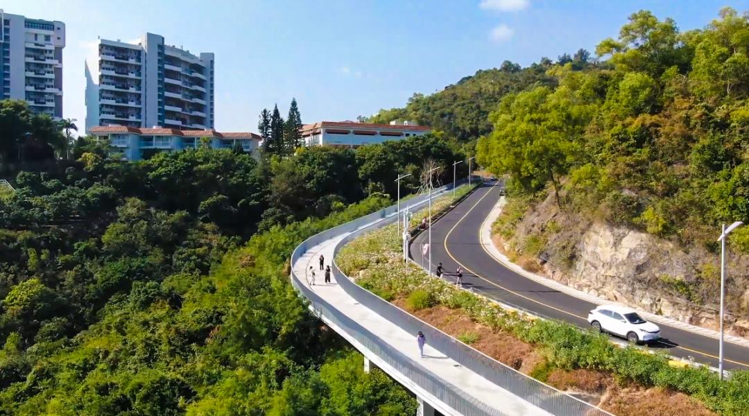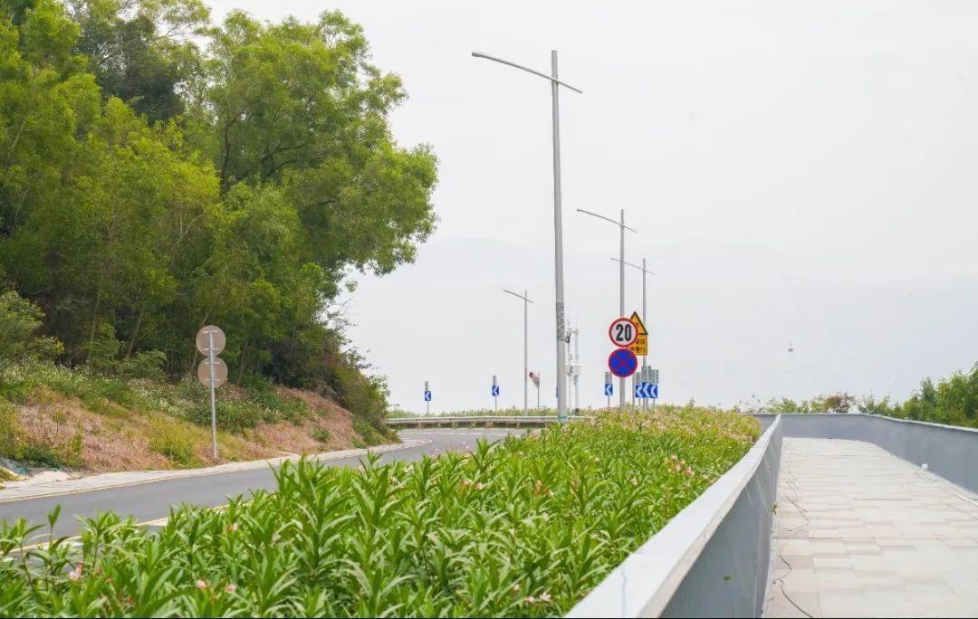 该项目绿道总长4.35公里,宽4米,主要以栈桥的形式位于旧路临海一侧的山丘边坡上,并且结合现场地势特点设置了多处观景平台,效果能够使得走在绿道上的人们领略到大鹏湾独一无二的海天一色韵味,感受到自然和人文环境相协调的美好。