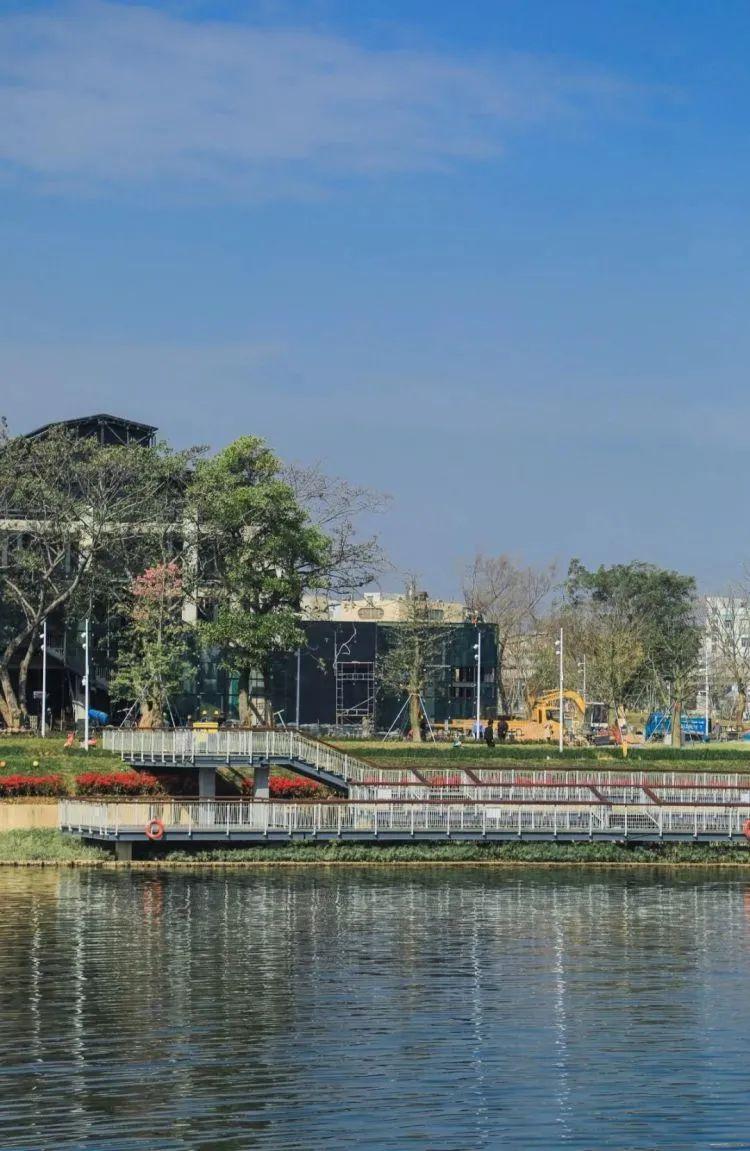 沿着碧道,路过燕罗湿地、悬亭静泊、燕几之翼等,走到碧道之环,看洋涌河水闸桥静卧河中,尤其到了夜晚,在霓虹灯的点缀下熠熠生辉。