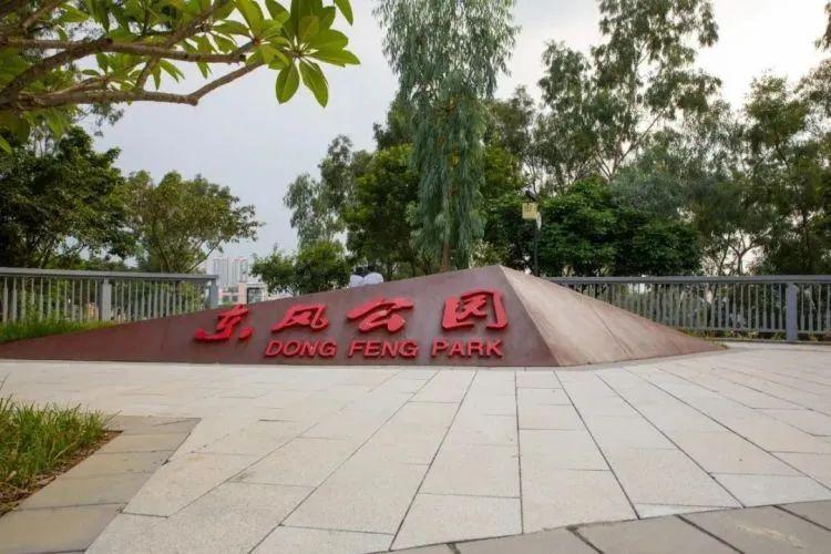 东风公园,是社会主义核心价值观主题公园。展板、灯杆旗等,其实是24字、文明公约、文明礼仪等内容,风格大方清朗。