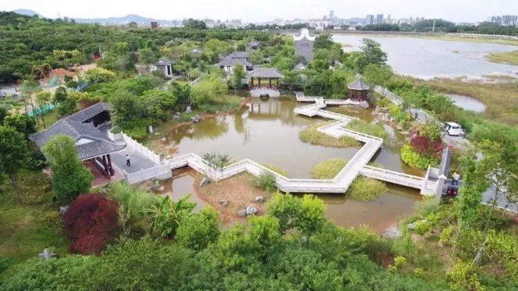 万绿丛绕、依山傍水,其中岭南庭院极具韵味。俯瞰松岗的松韵楼、古朴典雅的月季园、玻璃栈道和超大的儿童沙滩乐园,老少皆宜。
