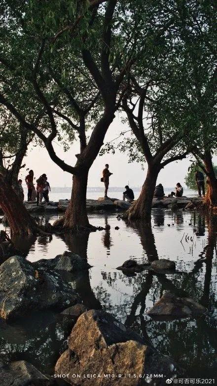 西湾红树林湿地公园,沿海岸线而建,其滨海栈道长达三公里,是看日落的最佳地点之一。树木矗立海中,走在石头上,树影、人影,绰绰约约。