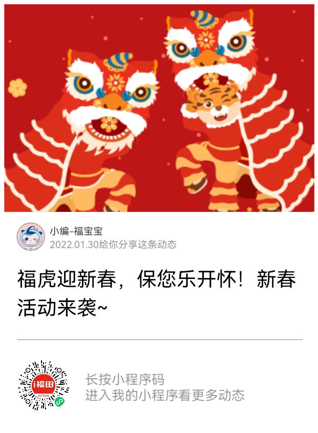 各位街坊朋友,2022福田区福保街道“福虎迎新春,保您乐开怀”活动正式启动啦,愿喜庆的活动给您带来吉祥和快乐!