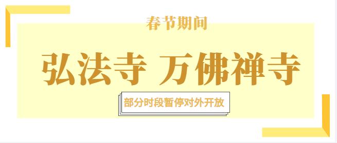1月31日(除夕)8时至2月3日(正月初三)8时,共三天,深圳弘法寺、万佛禅寺均暂停对外开放,禁止工作以外的人员和车辆进入。