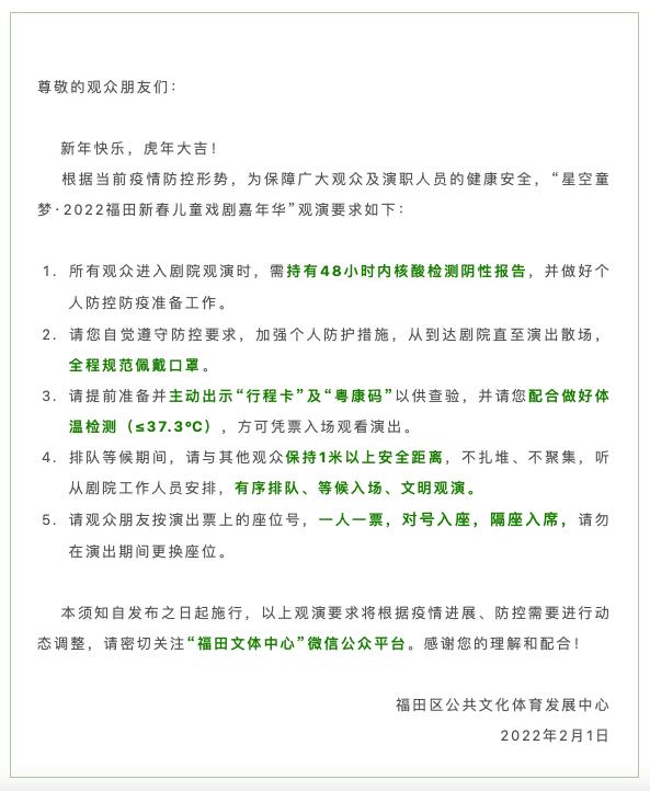 “星空童梦2022福田新春儿童戏剧嘉年华”通知