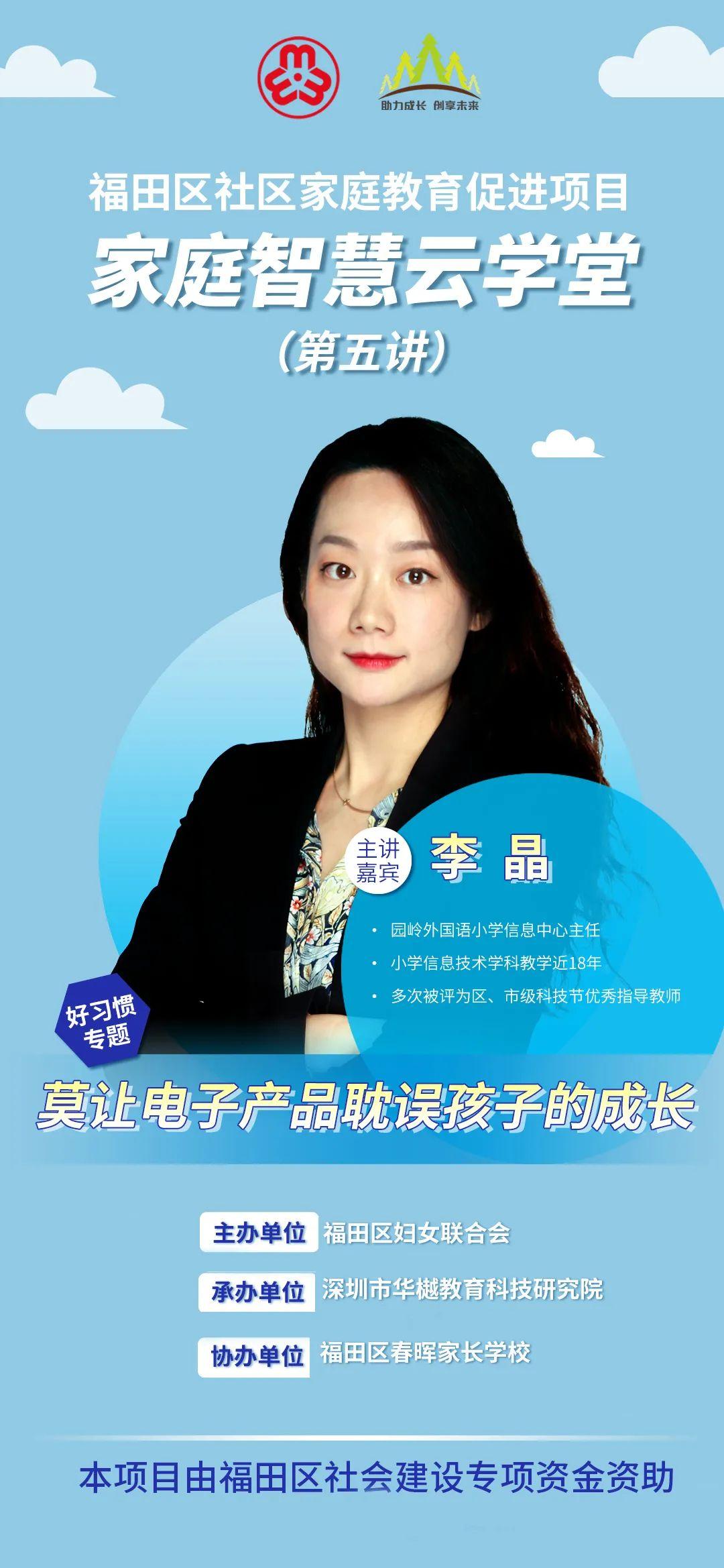 为深入贯彻实施《中华人民共和国家庭教育促进法》,宣传普及家庭教育知识,由福田区妇女联合会主办,深圳市华樾教育科技研究院承办的福田区社区家庭教育促进项目“家庭智慧云学堂”系列课程开讲啦!