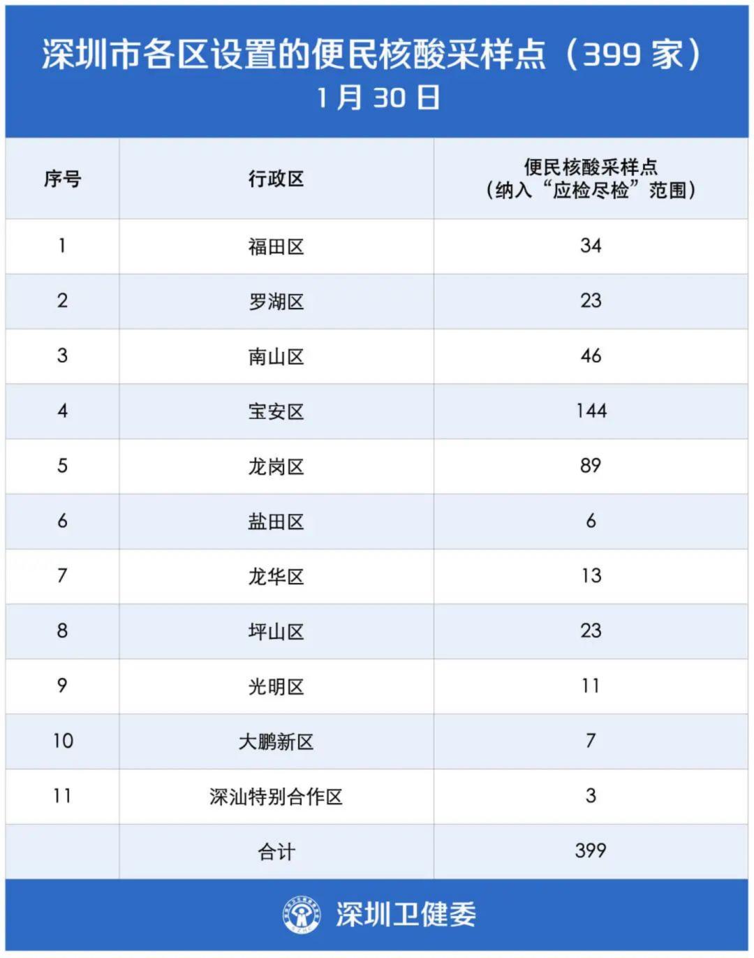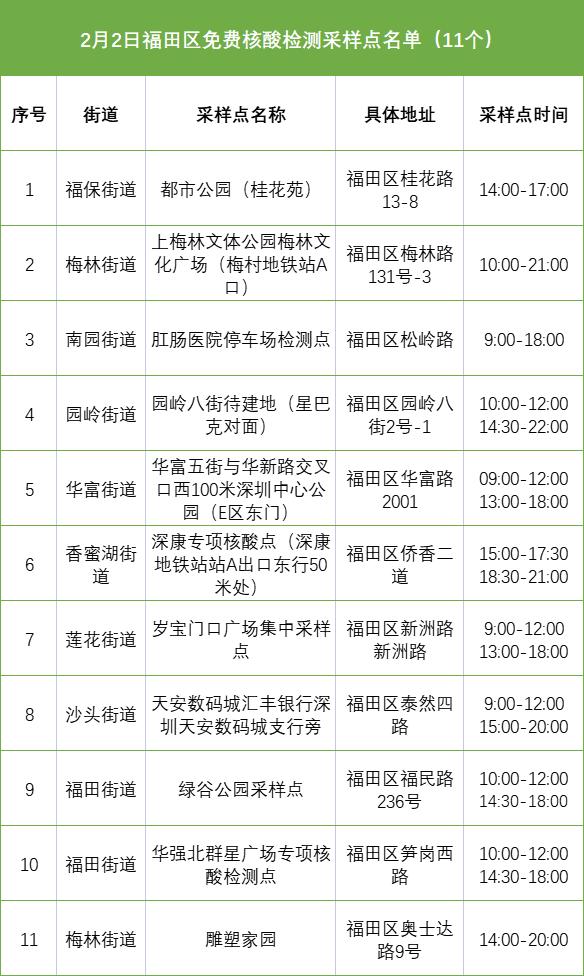 为方便居民进行核酸检测,2月2日,福田区设置11个免费的核酸检测采样点,为居民提供服务。