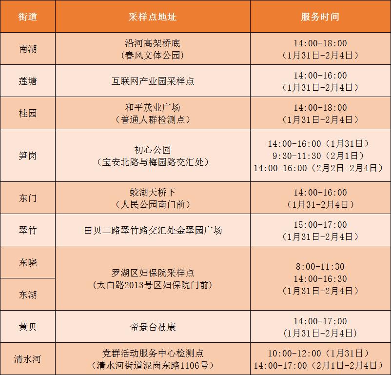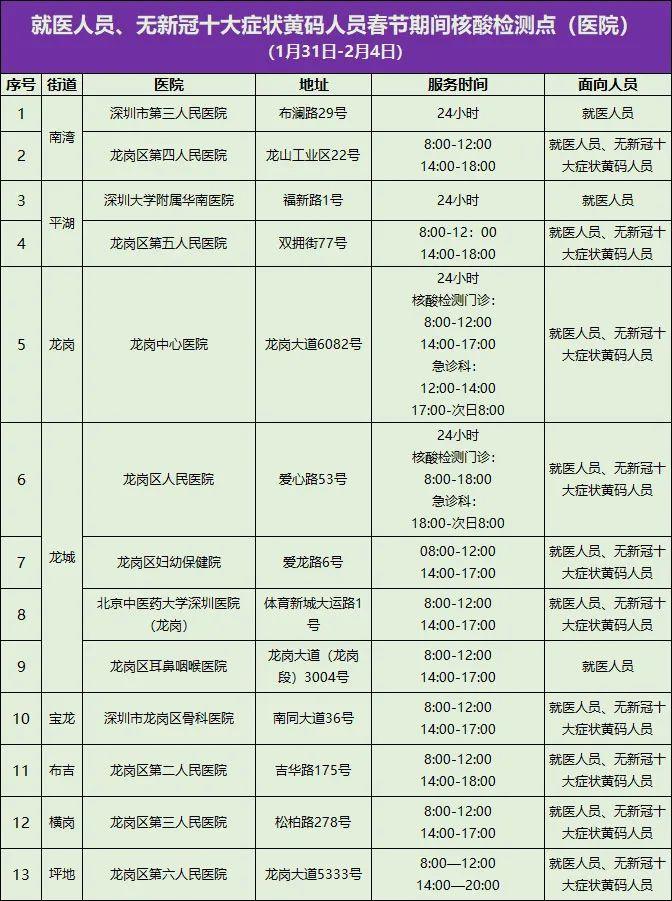 (核酸监测点名单及采样时间将根据实际情况进行调整,具体信息以现场为准,点位位置可通过“i龙华”小程序进行查询,2月6日(正月初六)及以后名单待更新,请持续关注)