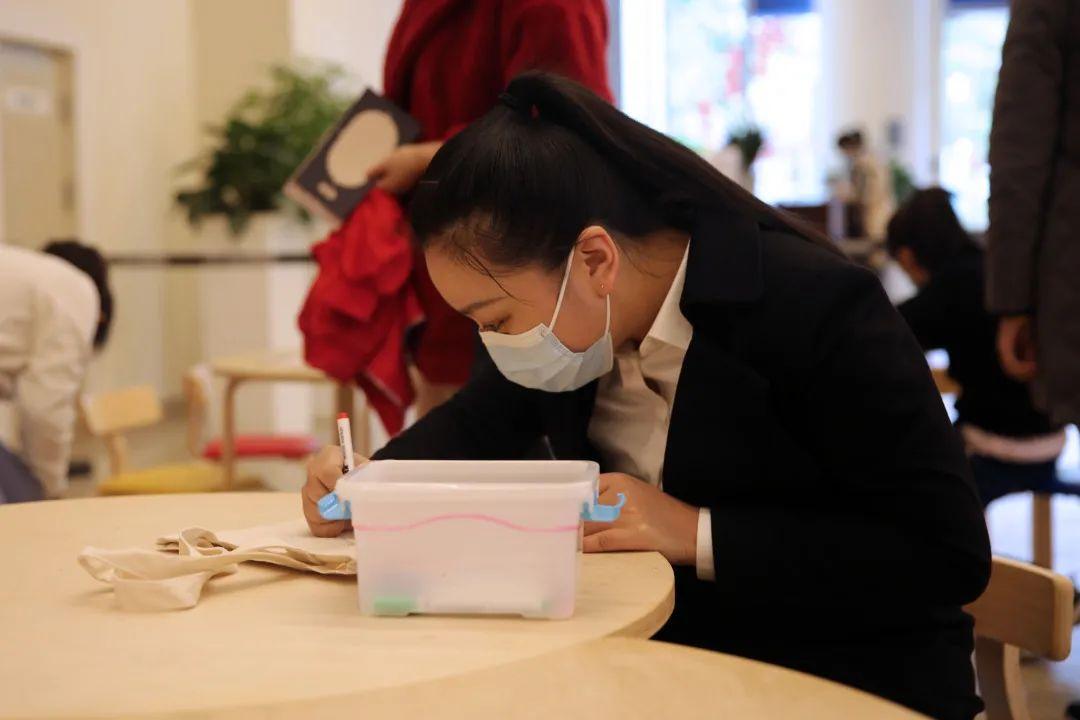 在指定活动区域DIY冬奥吉祥物帆布袋,也可以在背景板上留下你对冬奥会的鼓励和祝福哦~