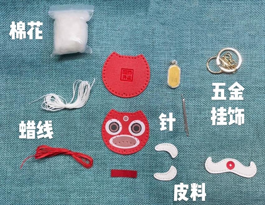 皮料、棉花、蜡线、圆头针、五金挂饰