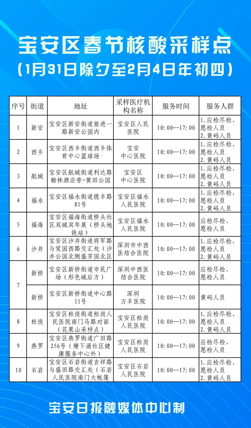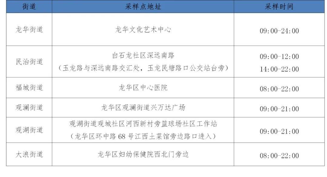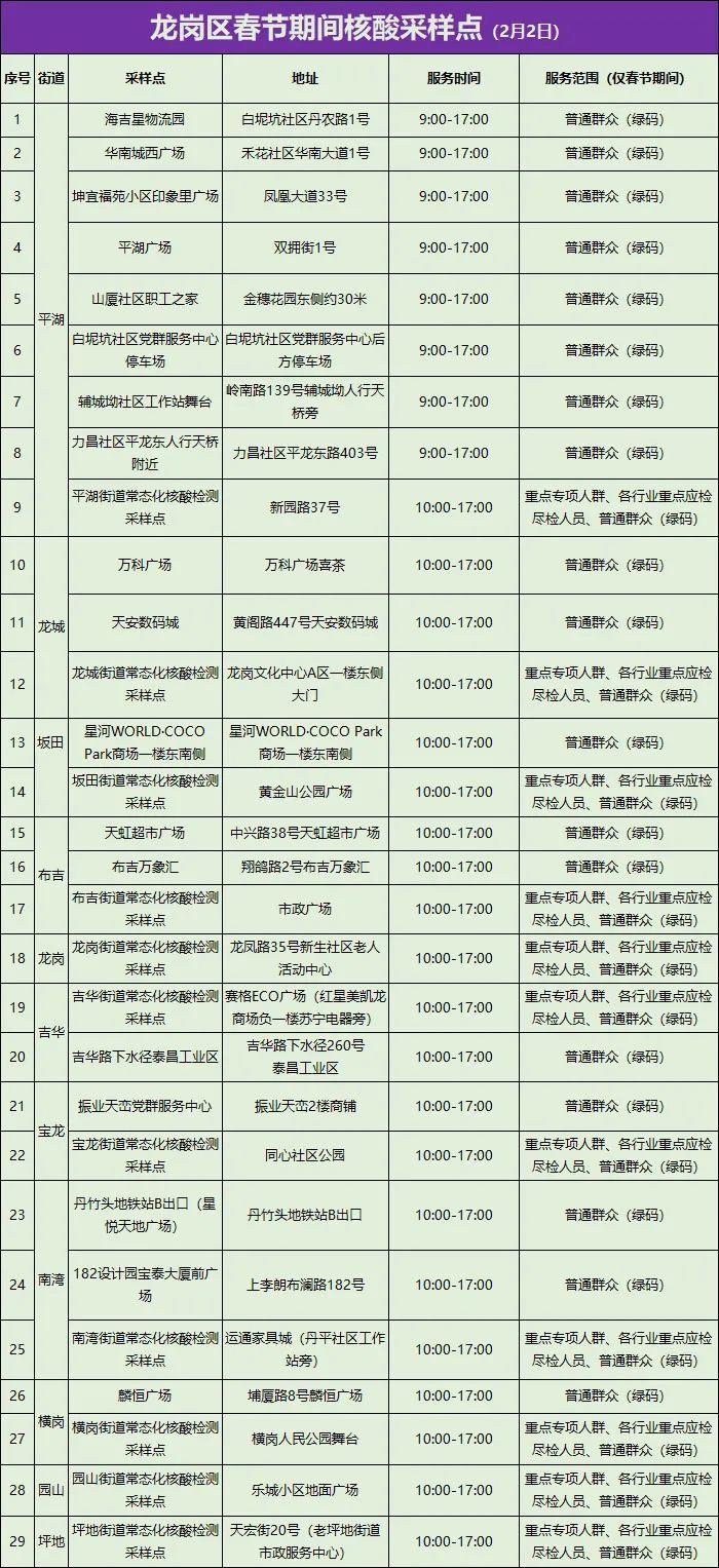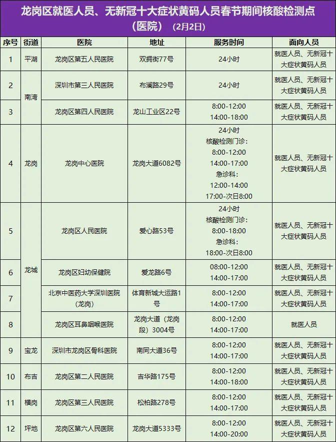 (核酸监测点名单及采样时间将根据实际情况进行调整,具体信息以现场为准,点位位置可通过“i龙华”小程序进行查询,2月6日(正月初六)及以后名单待更新,请持续关注)