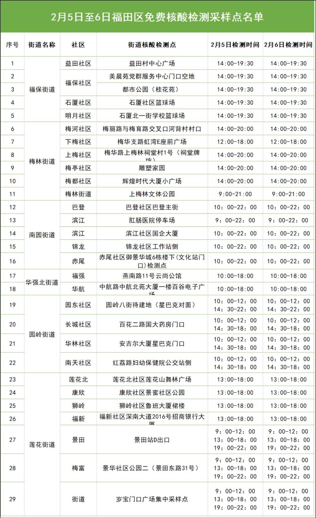 需要注意的是,免费核酸检测采样点名单及检测时间将根据实际情况进行动态调整,请市民持续关注