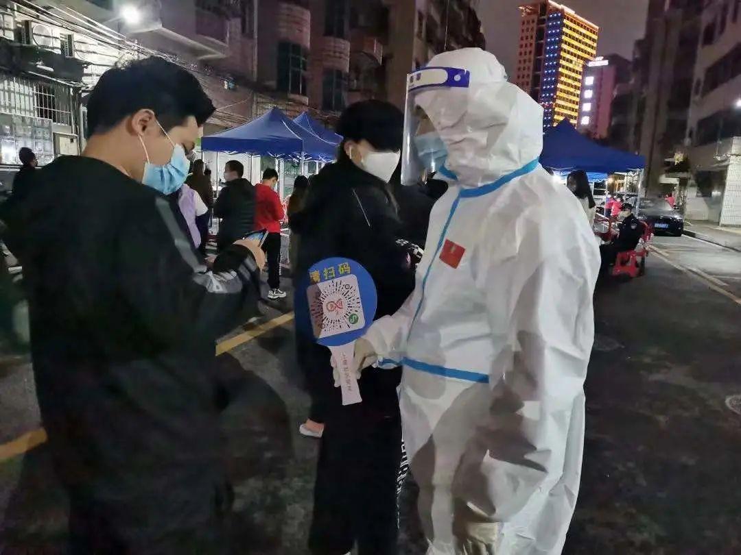 工作人员拿起扩音器,感谢居民主动配合检测,向现场市民大声喊:“祝大家新年快乐!”