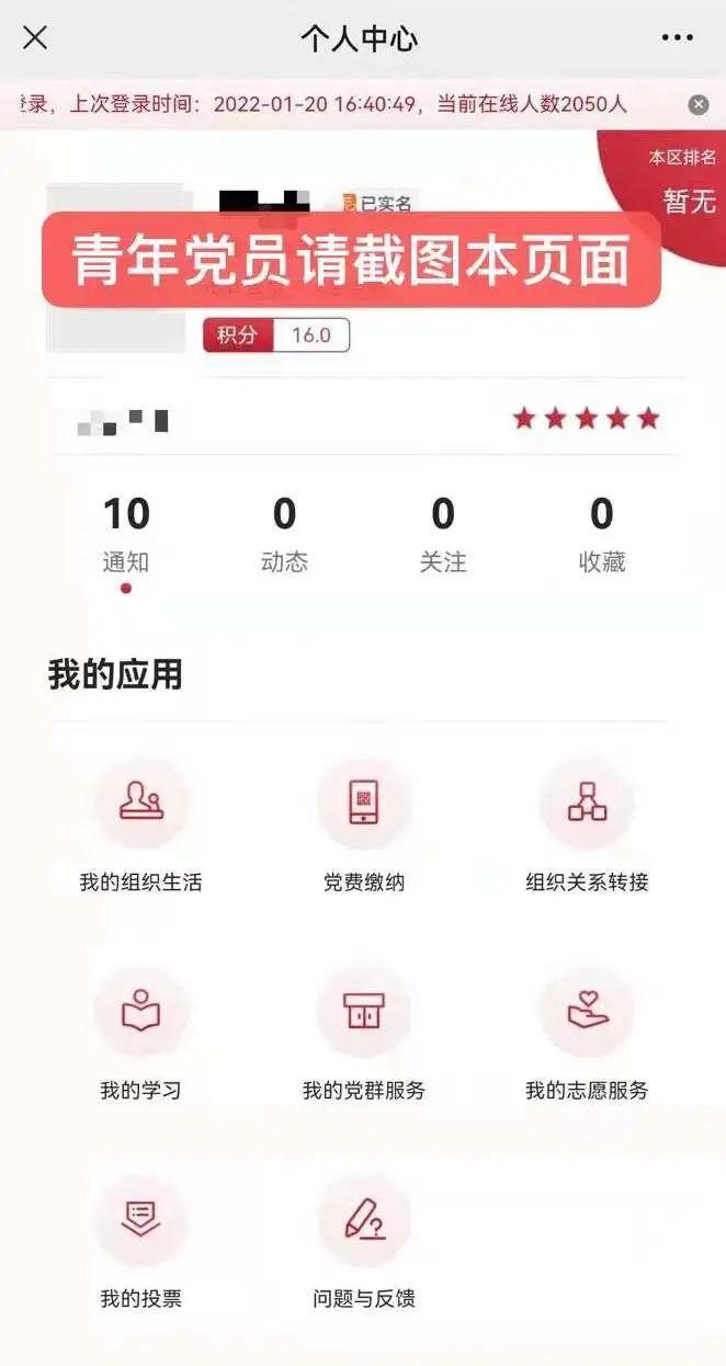 青年党员请进入“深圳智慧党建”公众号—点击菜单栏我的。