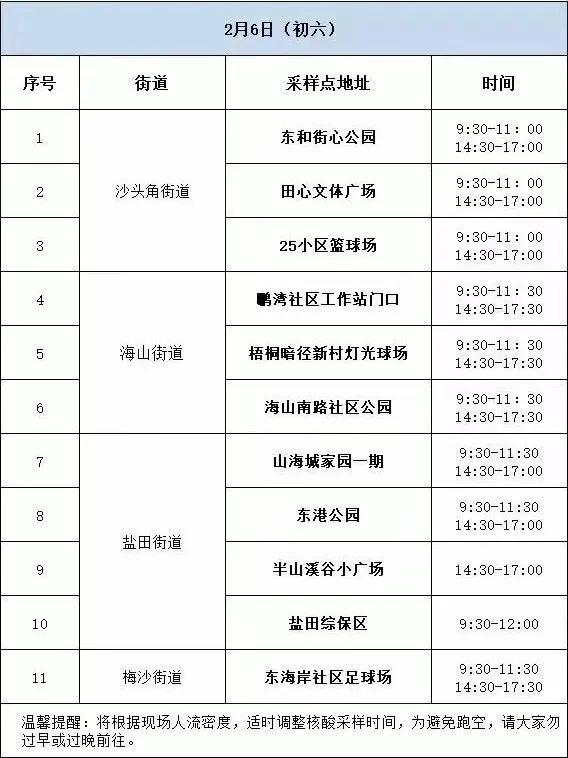 三、做好核酸检测。新区在各街道均设置多个核酸采样点,请您抵达新区后,在48小时内到就近核酸采样点开展1次核酸检测。倡议全区各类企业以及经营场所返深员工持48小时内核酸检测阴性证明返岗上班。全区党政机关、事业单位、国有企业带头落实返深工作人员核酸检测及持48小时内核酸检测阴性证明返岗上班等健康管理措施。