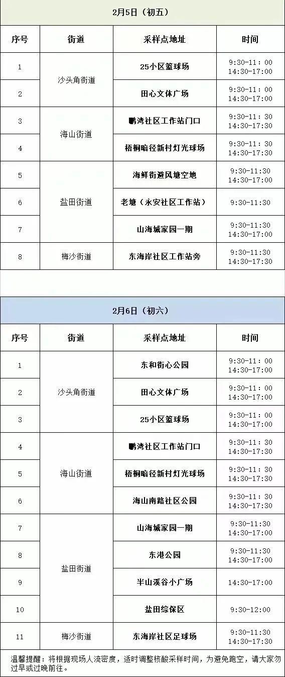盐田核酸检测点信息来了