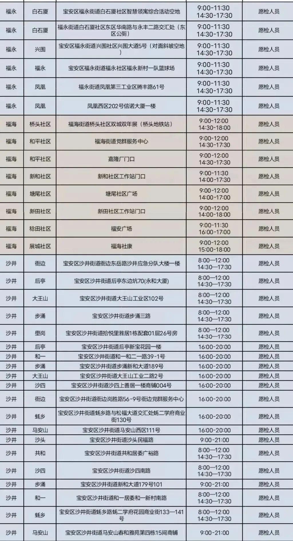 石岩街道执行特殊疫情防护政策,核酸点不在此次公布范围。