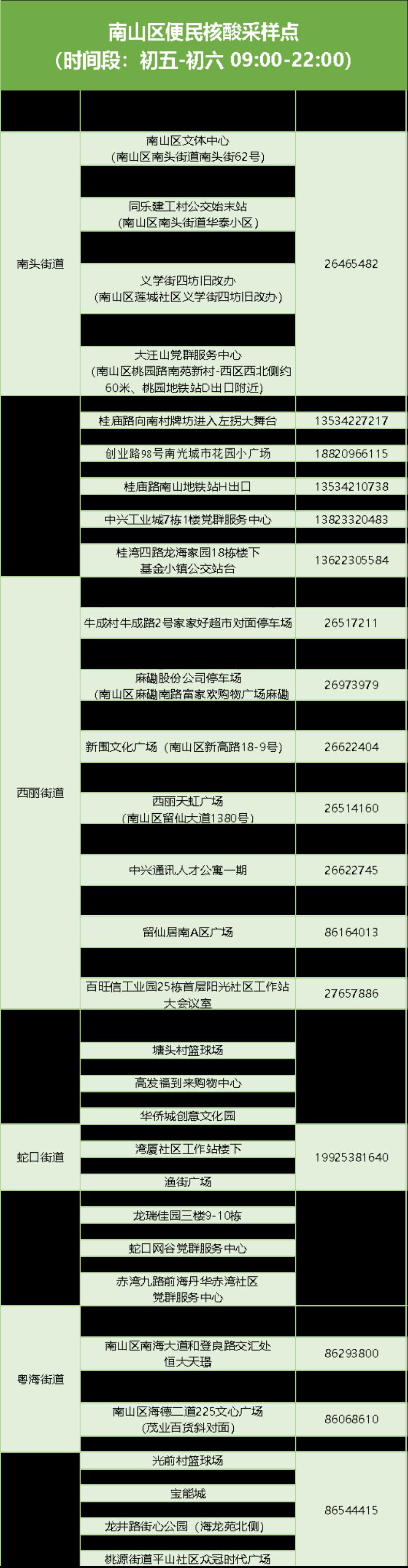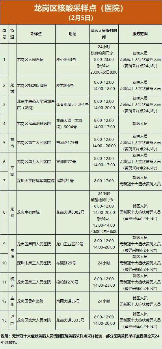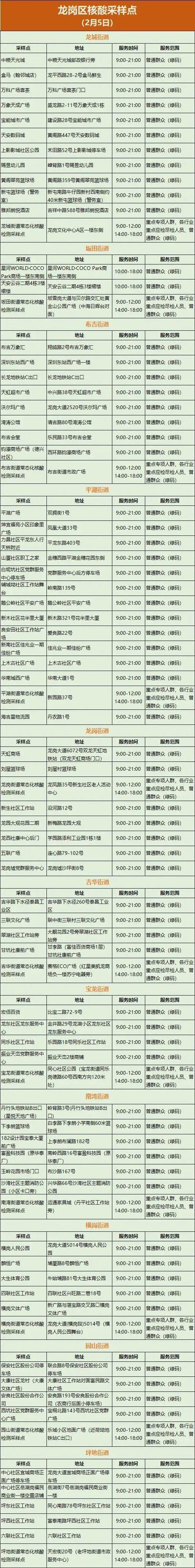 龙岗区核酸采样点(2月5日)