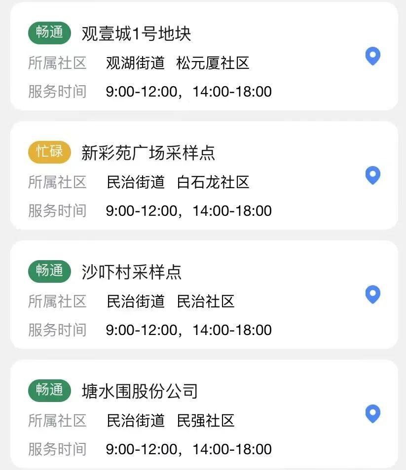 具体采样点安排以街道通知为准
