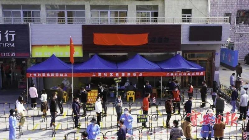 防范区市民到固定核酸采样点位有序参与核酸采样。