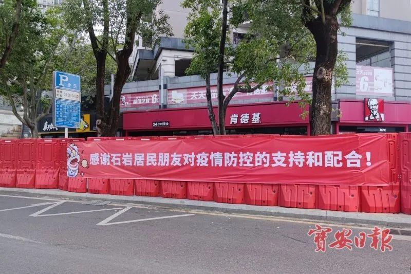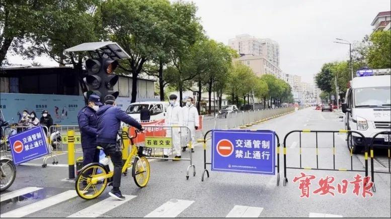 石岩管控区卡口,防疫工作人员按规定核查核酸码和进出放行条,严格执行通行指令。