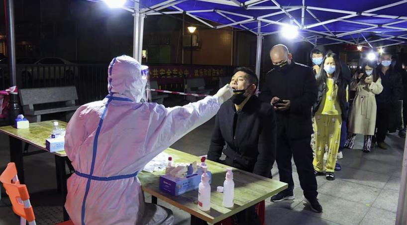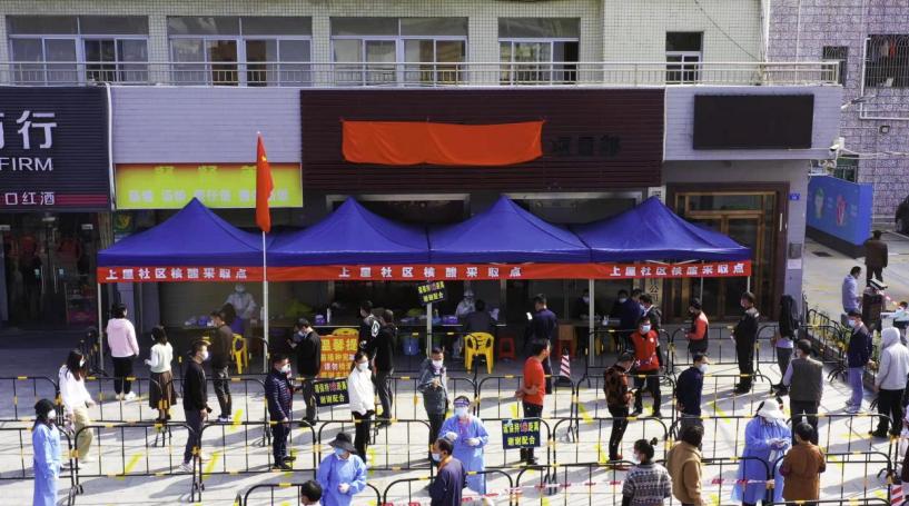 防范区市民到固定核酸采样点位有序参与核酸采样。