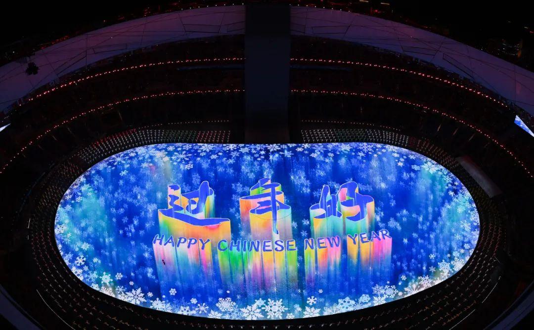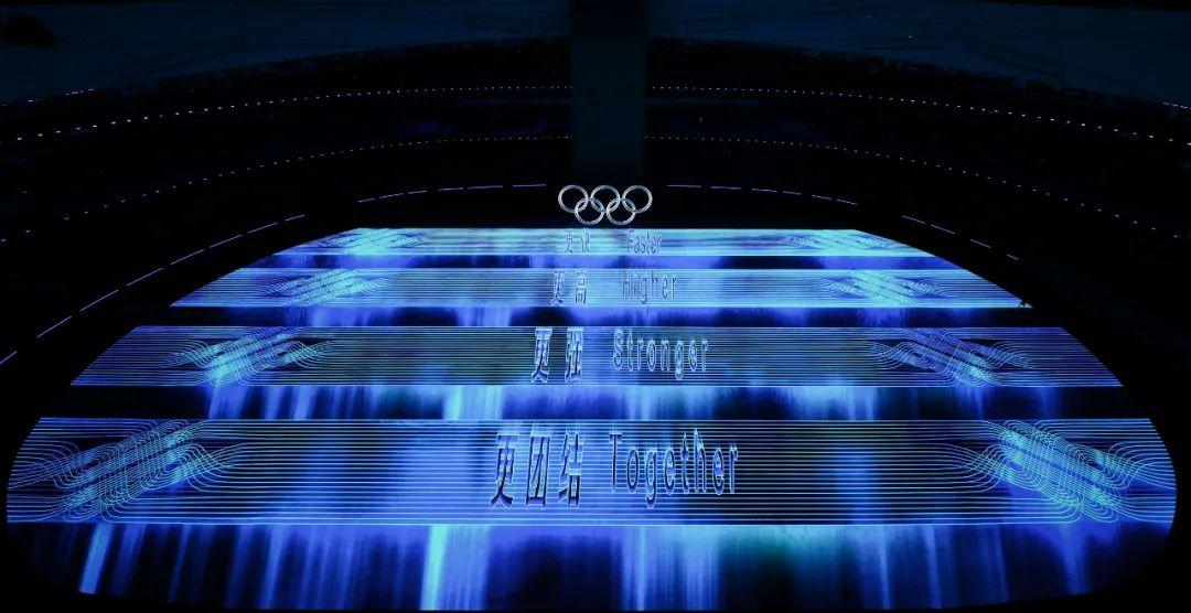 2月4日晚,第二十四届冬季奥林匹克运动会开幕式在北京国家体育场举行。这是场地上的奥林匹克格言。新华社记者 陈益宸 摄
