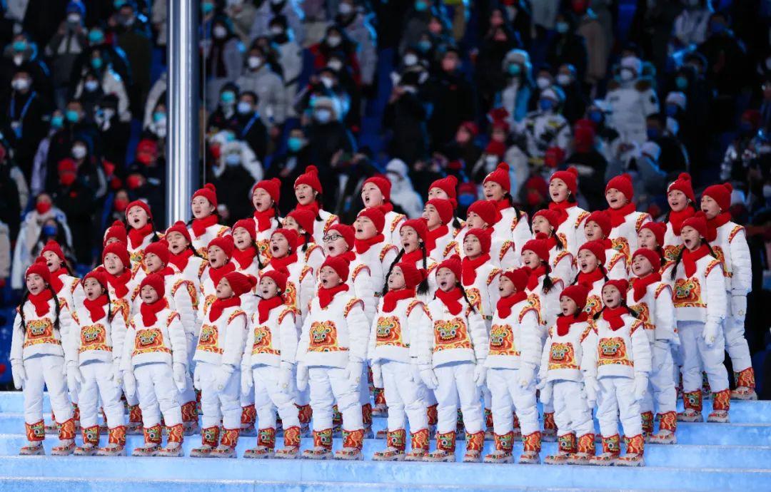 2月4日晚,第二十四届冬季奥林匹克运动会开幕式在北京国家体育场举行。这是“马兰花儿童合唱团”用希腊语在开幕式上歌唱。新华社记者 曹灿 摄