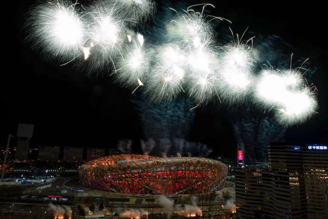 2月4日晚,第二十四届冬季奥林匹克运动会开幕式在北京国家体育场举行。这是焰火表演。新华社记者 杨磊 摄