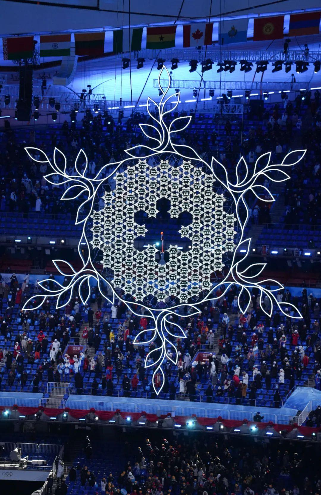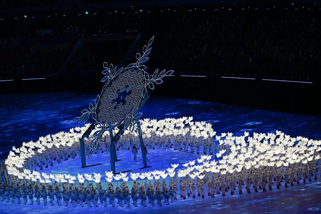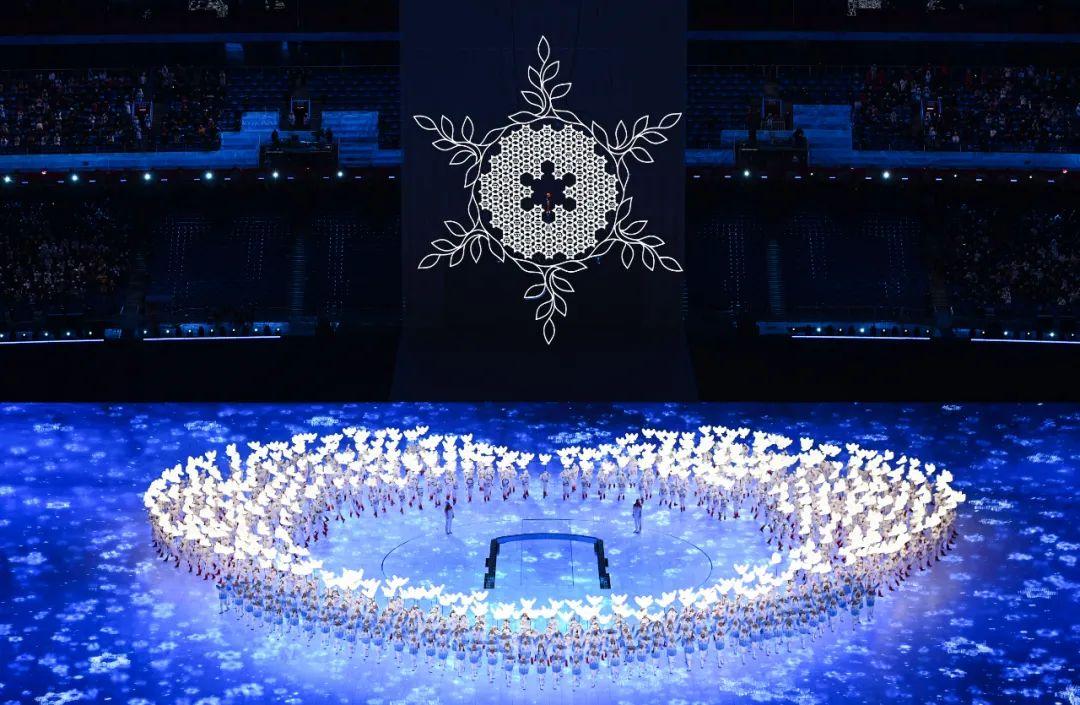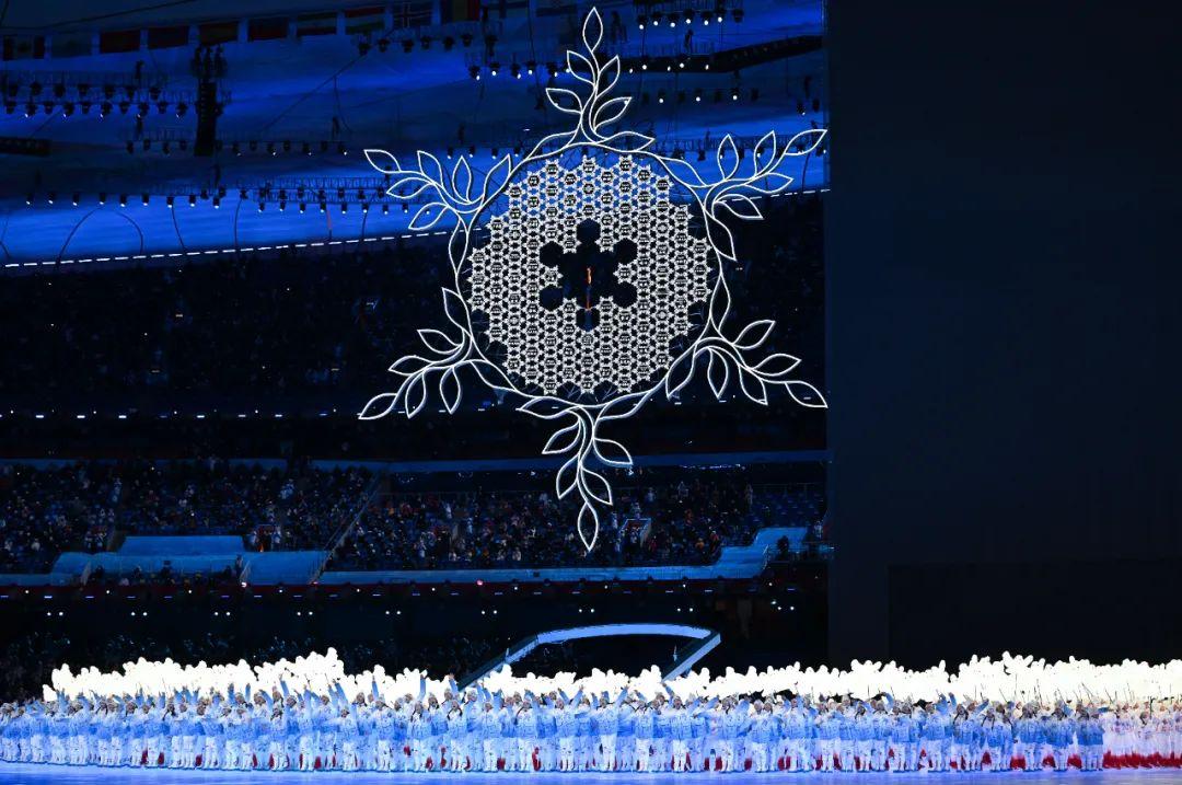 2月4日晚,第二十四届冬季奥林匹克运动会开幕式在北京国家体育场举行。这是开幕式上的“构建一朵雪花”环节。新华社记者 熊琦 摄